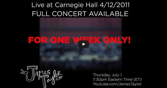 James Taylor at Carnegie Hall — free online stream starts July 1!
